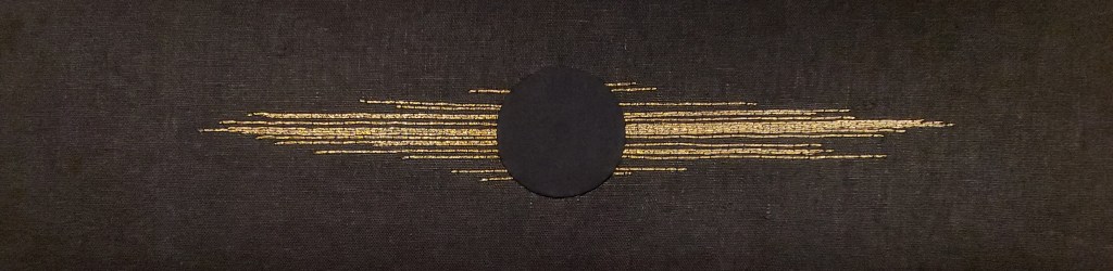 Created on black cotton with burnished gold thread. Creating straight lines is a challenge.