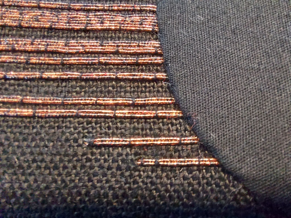 and here in burnished copper metal thread